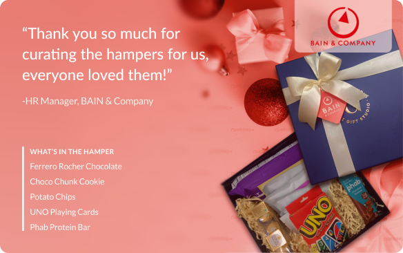 Choose from a curated list of the best gift hampers, personalized boxes, and company-branded gift items that match your company's values.