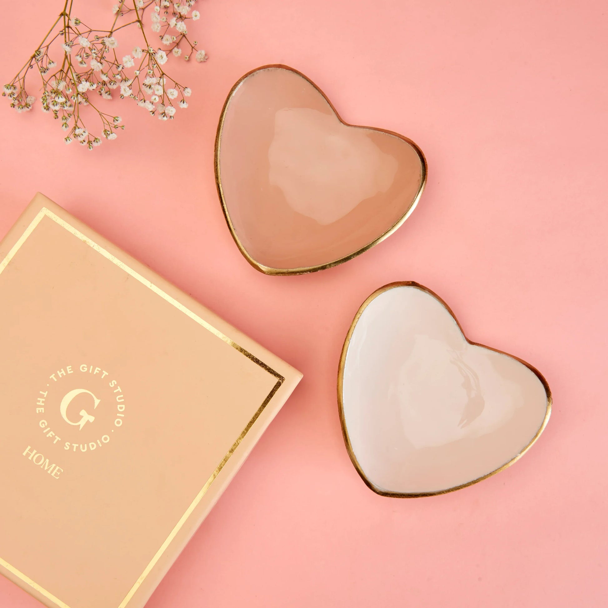 Enamelled Set of 2 Heart Shaped Trinket Trays